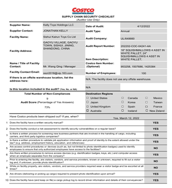 先后通过了BSCI、UL、沃尔玛验厂、ISO质量管理体系认证等20多个国际客户的验厂或认证, 成功进入沃尔玛、好市多、塔吉特等国际主流销售网络,成为了世界毛绒玩具供应链的核心工厂