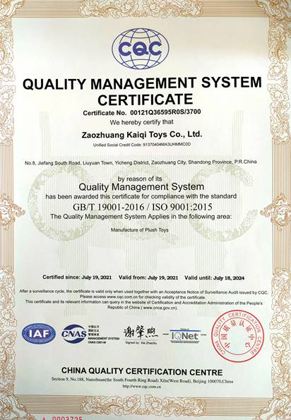 枣庄活力玩具有限公司,成立于2020年12月,位于枣庄市峄城区榴园镇驻地,公司占地面积4600平方米,先后通过了BSCI、GSV的资格验厂,获得了ISO9001国际质量体系认证。公司前身是一家具有20年毛绒玩具生产经验的工厂,无论是管理者还是工人都有丰富的经验,公司投资了大量的现代化的生产设备,招聘了一批优秀的大学生,扩大设计和业务队伍,造就了一批训练有素,技艺熟练的管理人员和职工队伍。在产品的外观形象设计、品种多样化、质量安全等方面着力研发,更充分的满足于不同的客户要求。